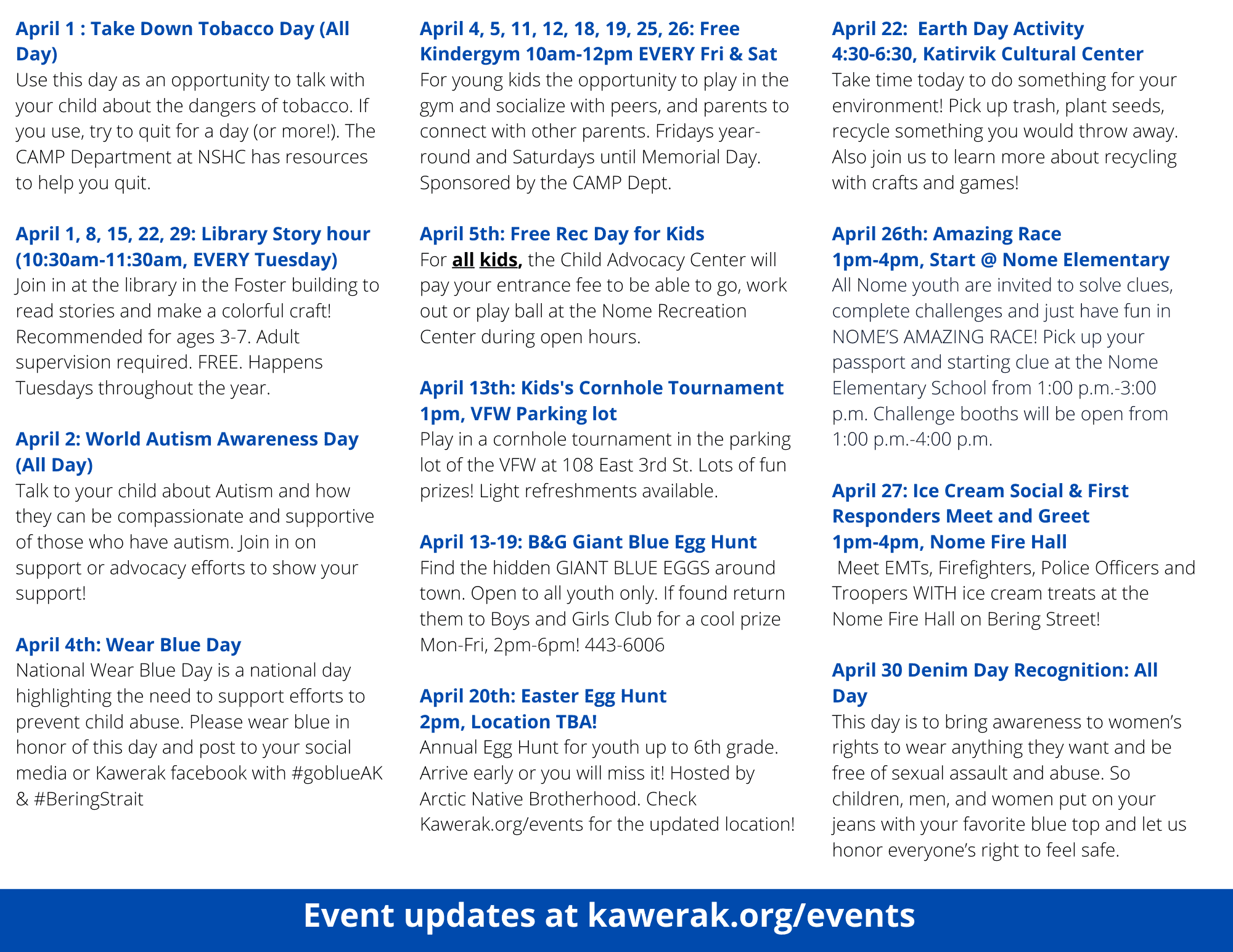 In month of April we at the Child Advocacy Center recognize Child Abuse Prevention month. Each year we work to host activities, spread awareness, and make lasting community connections. We hope that you join us for some or all of these activities we and our amazing partners and volunteers have planned for you!