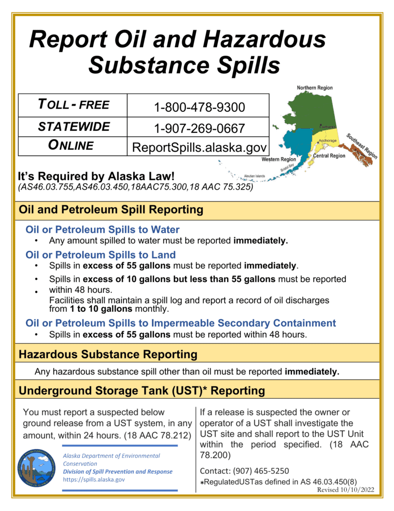 If you need immediate assistance with a spill, please contact AK Spill Response