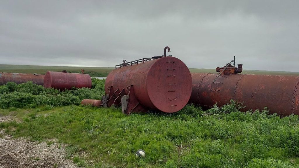 The site known as the Teller Basketball Court Tank Site, consisted of nine large fuel tanks and one small propane cylinder located next to the community’s basketball court.