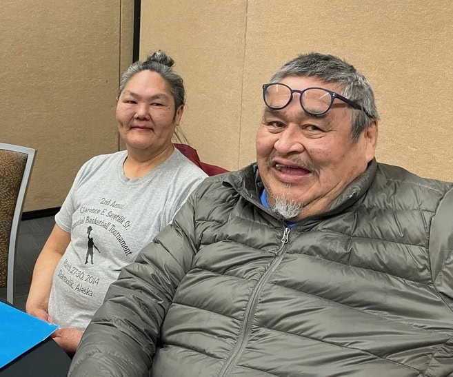 Louisa Paniptschuk and Ron Pitka Sr. in Anchorage waiting to deliver their testimony.